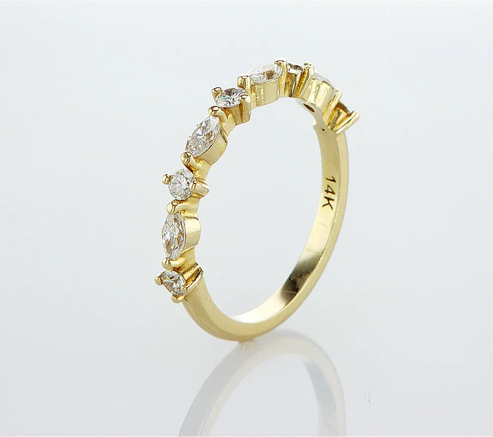 טבעת מעוצבת משובצת יהלומים עגולים ויהלומים בחיתוך מרקיזות טבעת מושלמת על כל אצבע , יכולה להיות כטבעת משלימה לטבעת אירוסין .