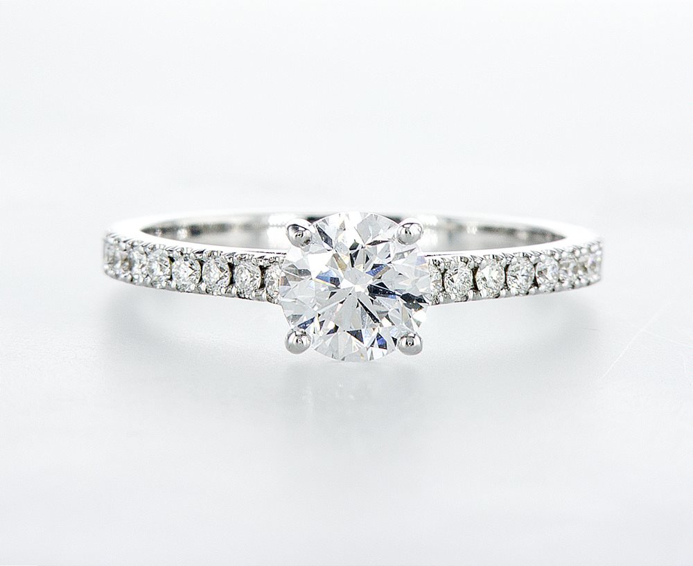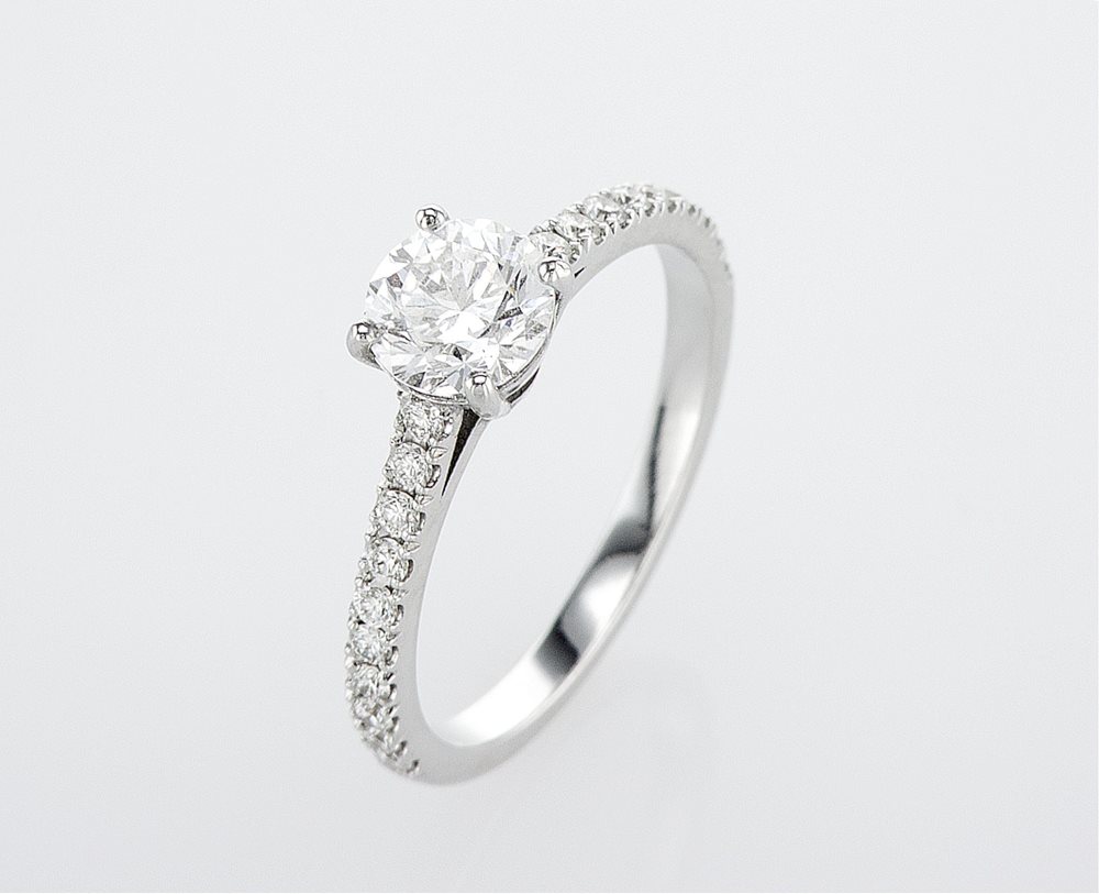 טבעת אירוסין קלאסית עם יהלום מרכזי והגבהה קלה בתוספת יהלומי צד