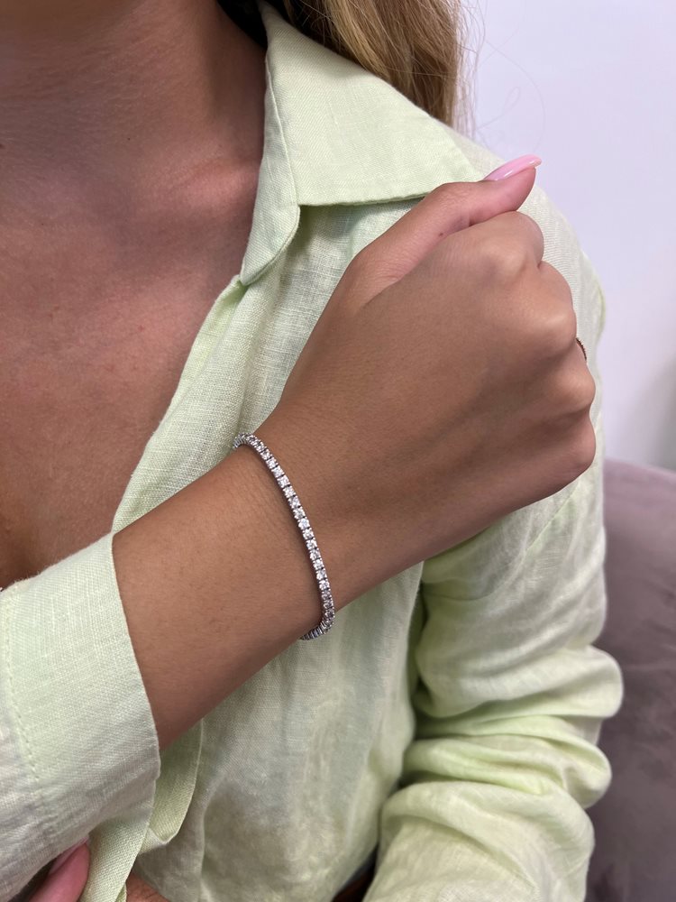 צמיד טניס אלגנטי עם 4 שיניים לכל יהלום, שוקל 11.2 גרם זהב 14 קארט, משובץ 53 יהלומים במשקל 5.30 קארט.