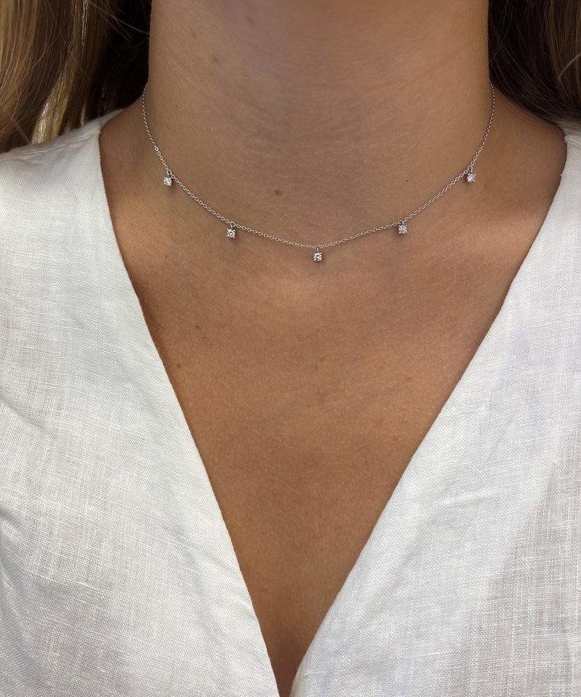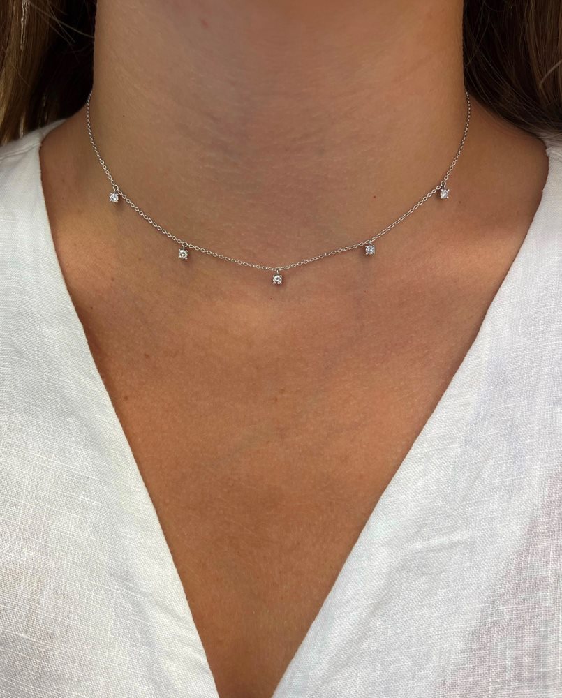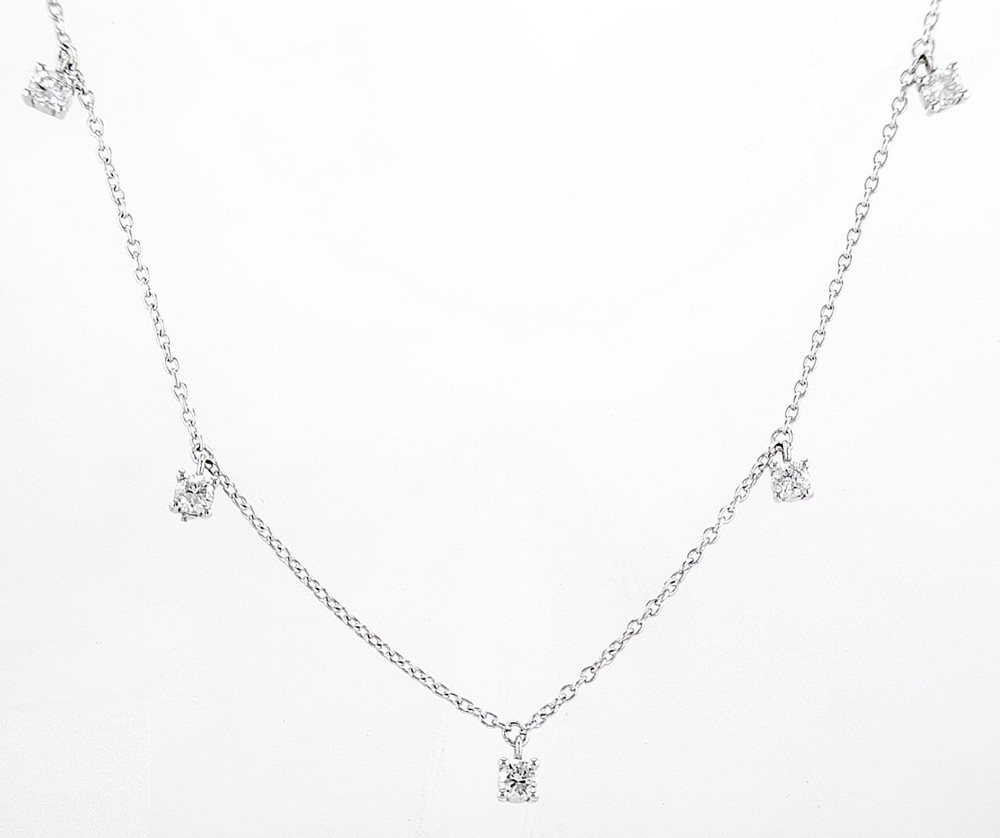 שרשרת זהב לבן משובצת 5 יהלומים טבעיים במשקל 0.40 נקודות באיכות D-F/VS.