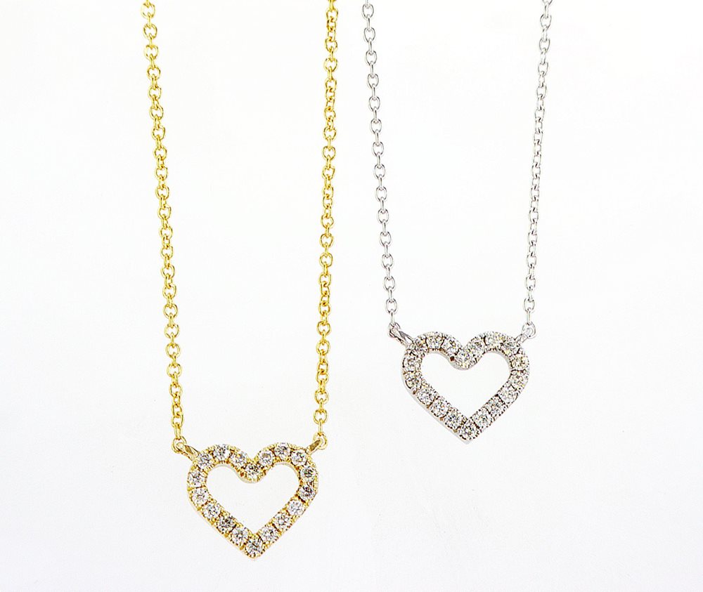 שרשרת זהב לבן עם תליון בצורת לב משובץ 18 יהלומים טבעיים במשקל 0.18 נקודות באיכות D-F\VS.