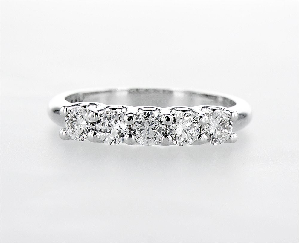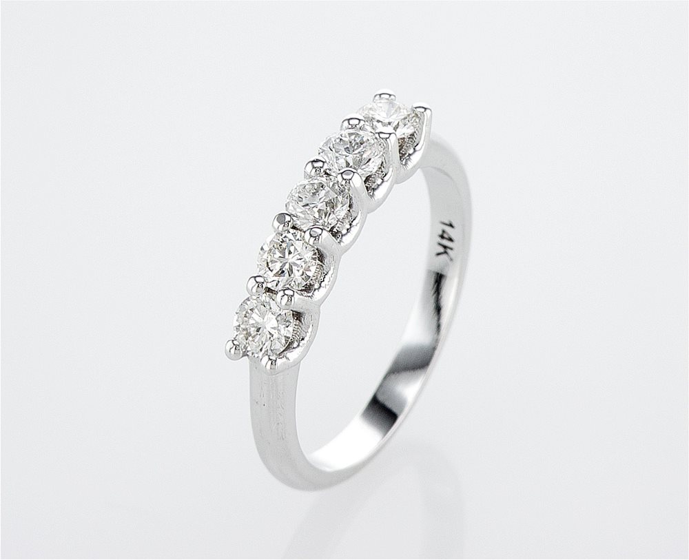 טבעת זהב 14 קארט משובצת 5 יהלומים במשקל 0.45 נקודות באיכות D-F/VS משובצת בסגנון " U ".
