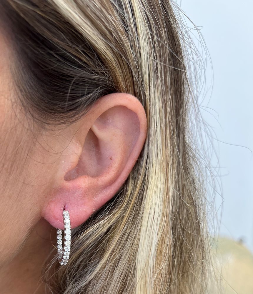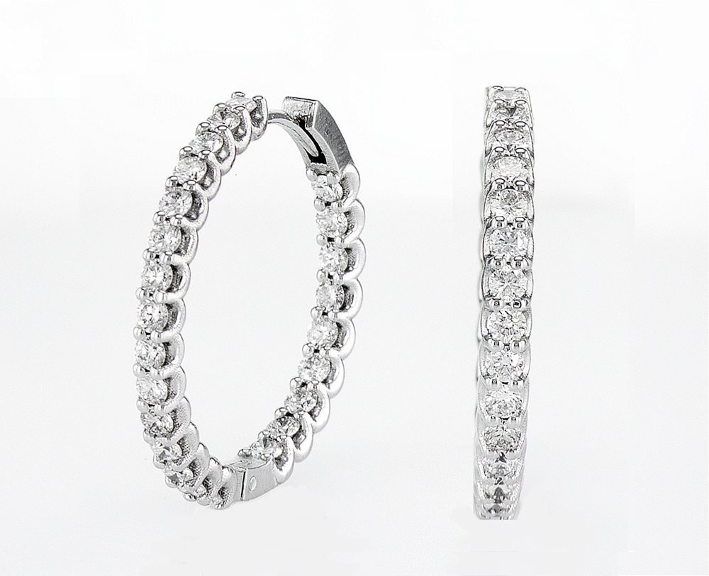 עגילי חישוק משובצים בתוך החישוק ועל החישוק יהלומים טבעיים במשקל 1.92 קארט באיכות D-F\VS.