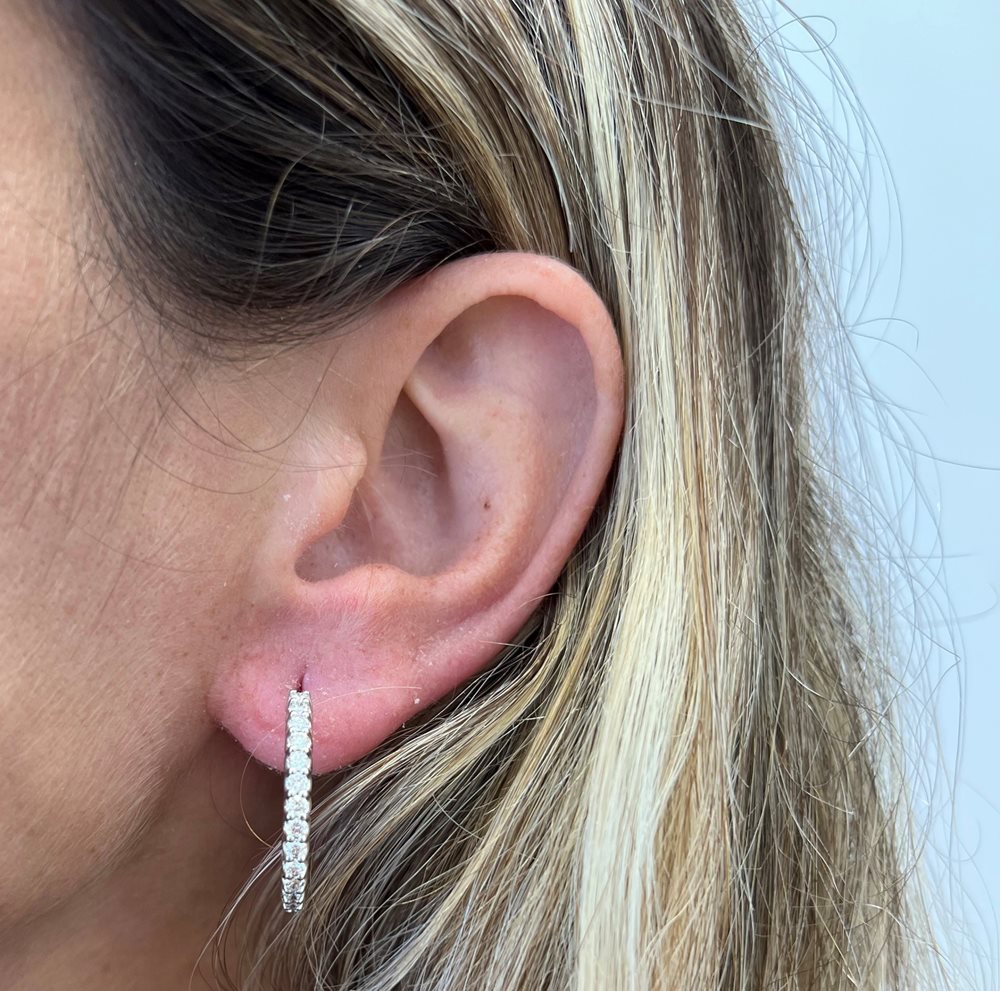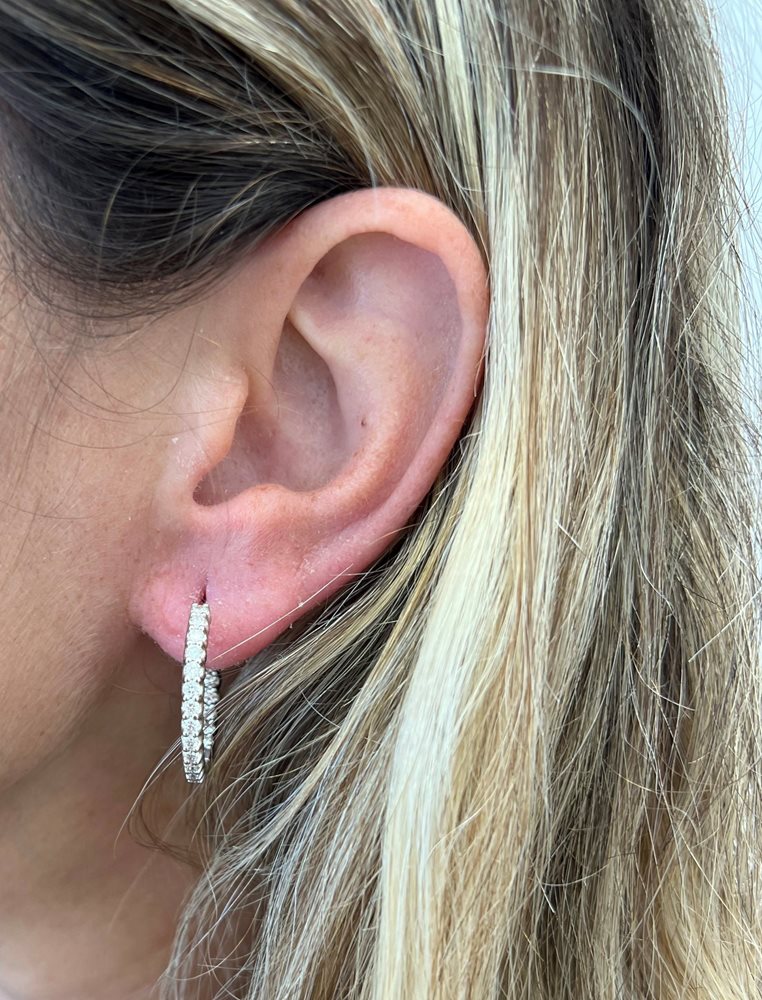 עגילי חישוק משובצים יהלומים בתוך החישוק ועל החישוק