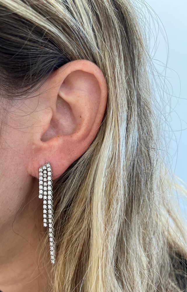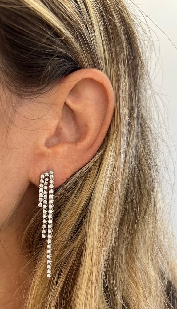 עגילי טניס יוקרתיים 3 שורות במשקל 6.6 גרם זהב 14 קארט,