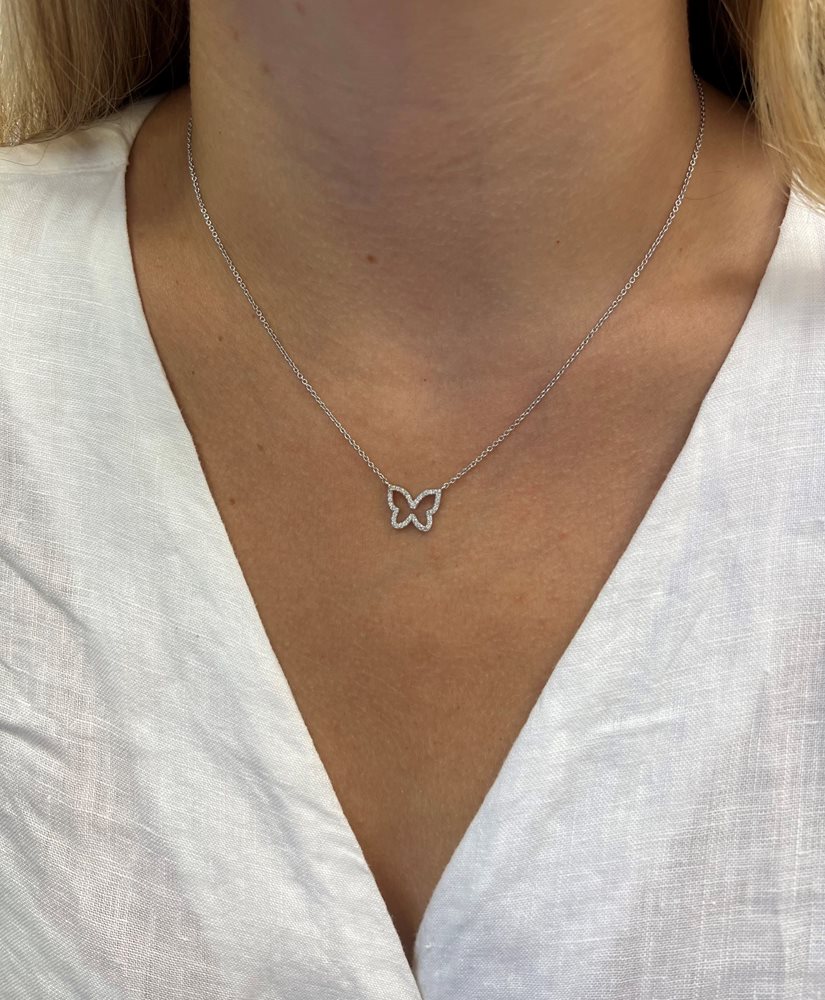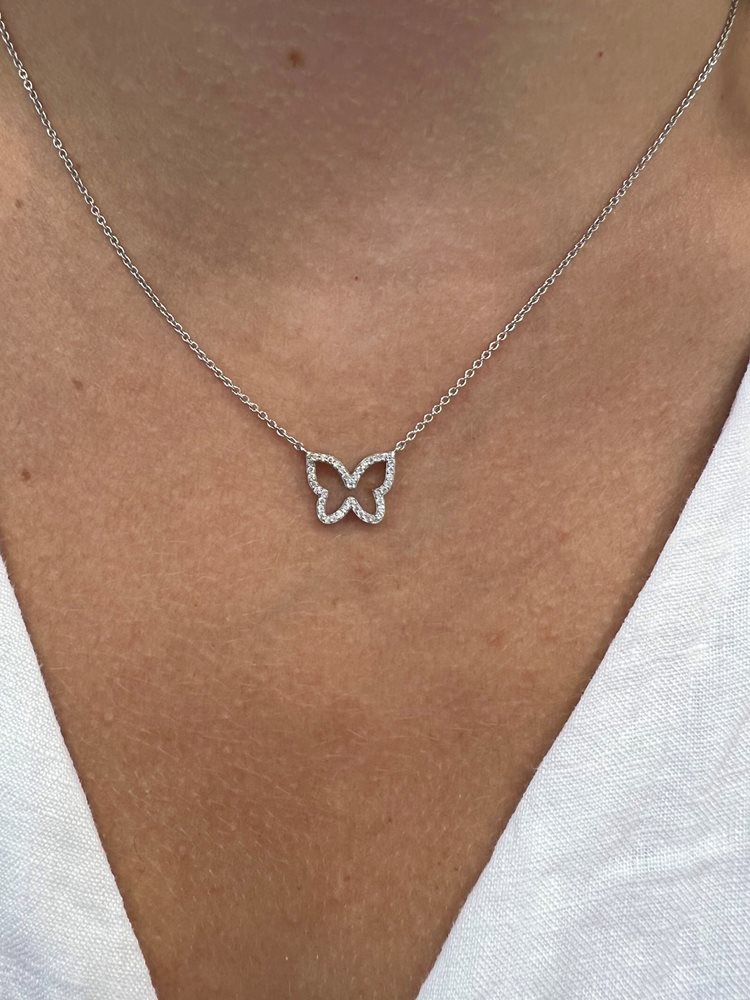 שרשרת זהב עם תליון פרפר במשקל 3.5 גרם זהב 14 קארט משובצת יהלומים טבעיים במשקל 0.20 נקודות באיכות