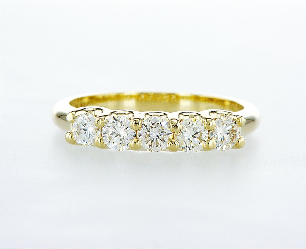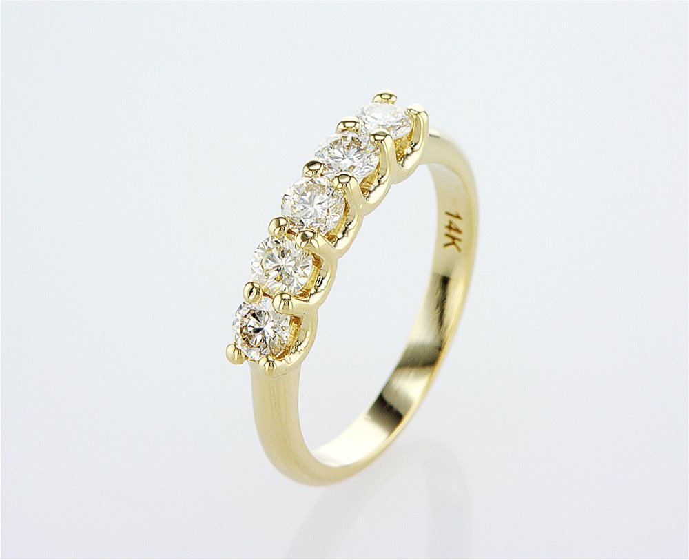טבעת זהב 14 קארט משובצת 5 יהלומים במשקל 0.45 נקודות באיכות D-F/VS משובצת בסגנון " U ".