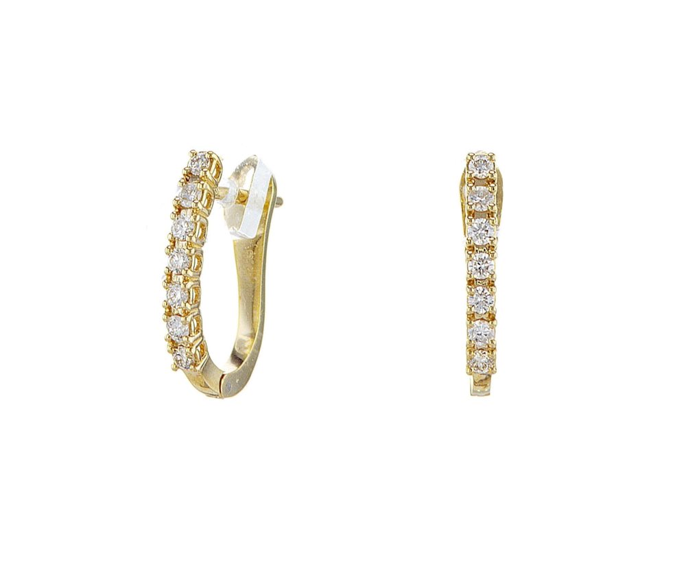 עגילים בצורת נבל קלאסיים, זהב 14 קארט, משובצים 14 יהלומים במשקל 0.42 נקודות יחד באיכות D-F\VS.