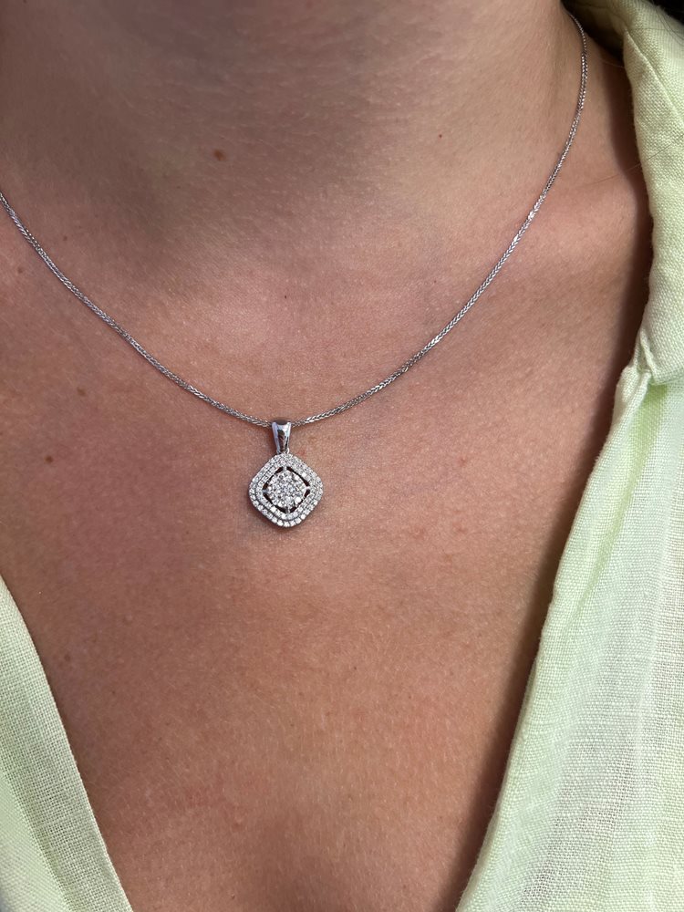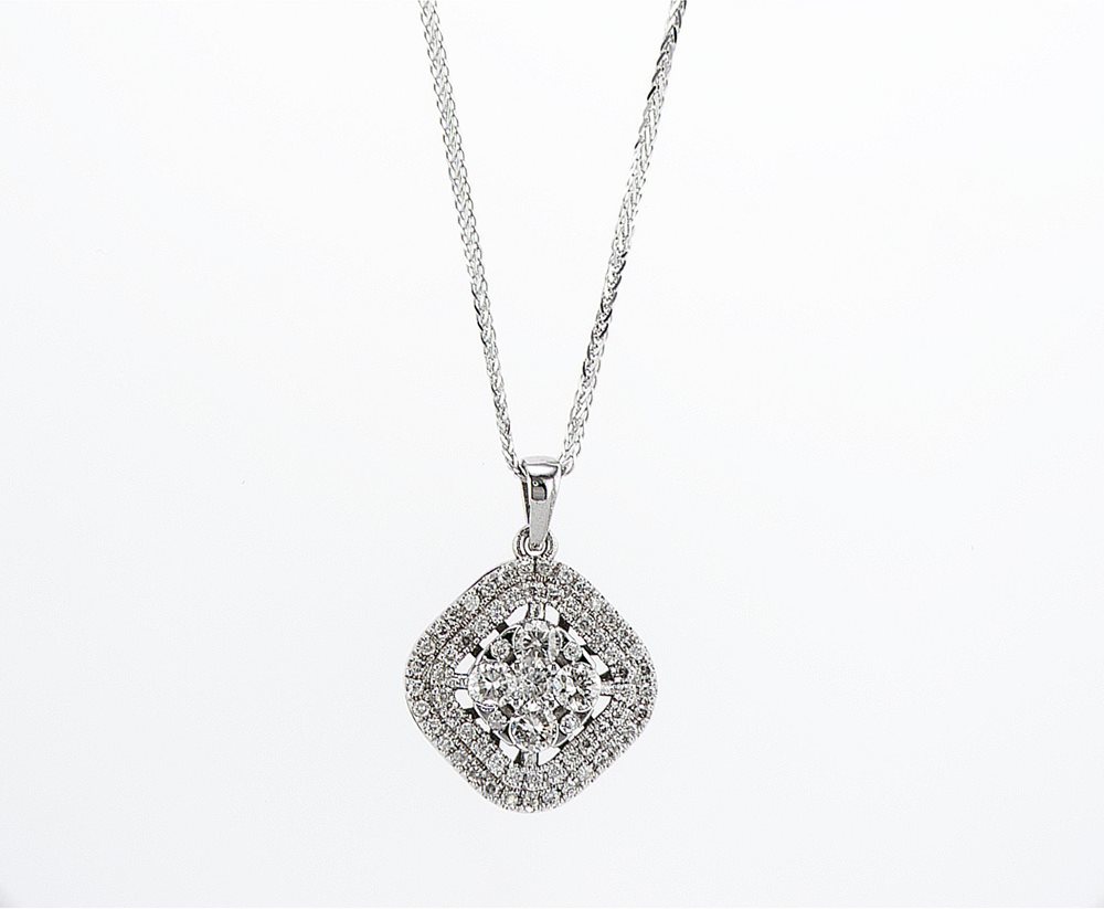 שרשרת זהב 14 קארט עם תליון אלגנטי משובץ יהלומים טבעיים במשקל 0.67 נקודות באיכות D-F/VS.