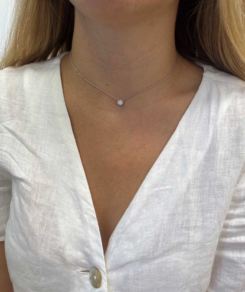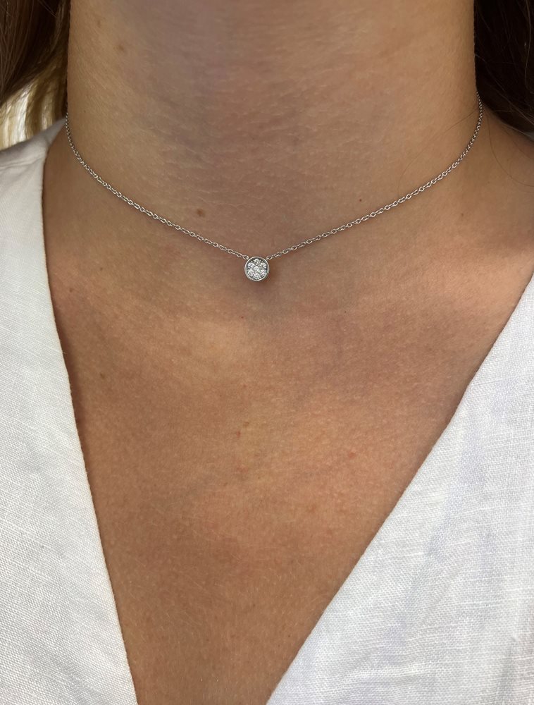 שרשרת יהלומים במשקל 2.0 גרם זהב 14 קארט, משובצים 7 יהלומים טבעיים במשקל 0.10 נקודות באיכות D-F\VS.