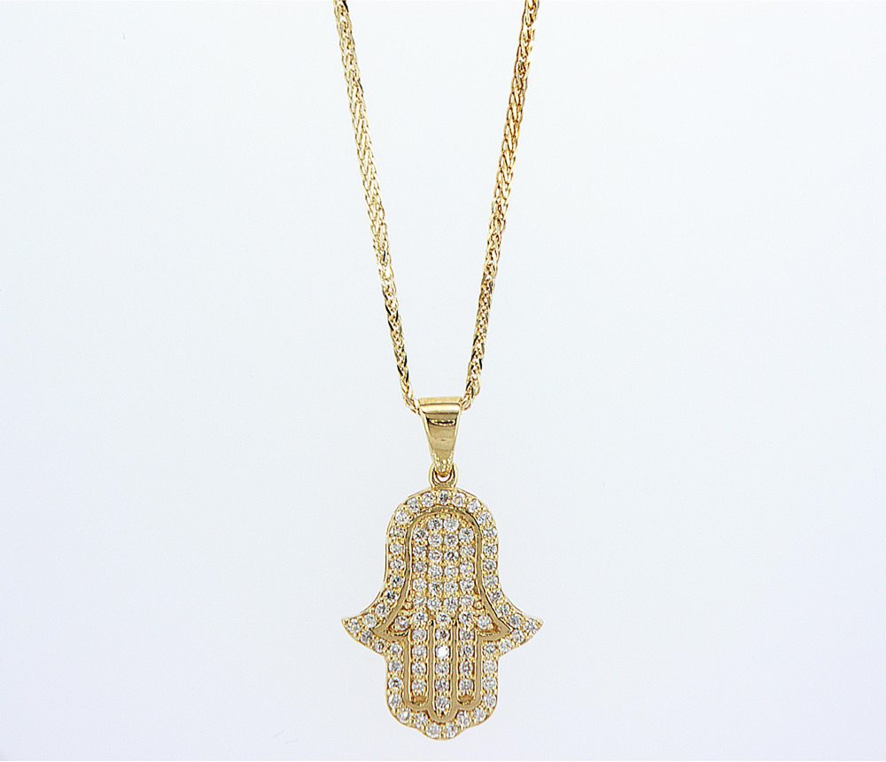 שרשרת חמסה מיוחדת ואלגנטית במשקל 3.3 גרם זהב 14 קארט משובצת יהלומים טבעיים במשקל 40 נקודות באיכות D-F/VS.