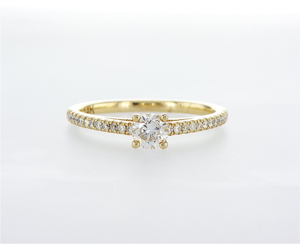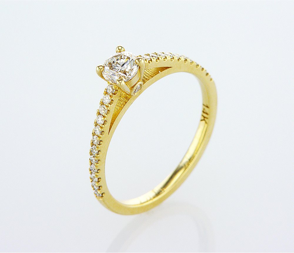 טבעת אירוסין קלאסית מוגבהת מעט למראה יוקרתי, משובצת יהלום טבעי במשקל 0.30 נקודות באיכות F\VS, בתוספת יהלומים טבעיים במשקל 0.26 נקודות באיכות