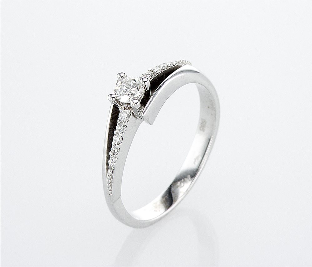 טבעת אירוסין אלגנטית משובצת יהלום מרכזי טבעי במשקל 0.18 נקודות באיכות F\VS