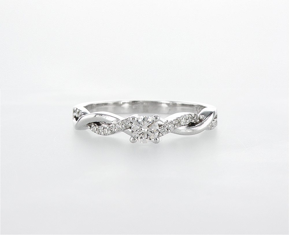 טבעת אירוסין בסגנון "צמה" מיוחדת ויפה עם יהלום מרכזי טבעי במשקל 0.20 נקודות באיכות F\VS,