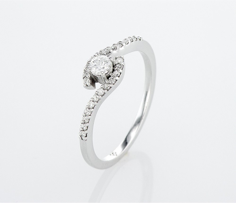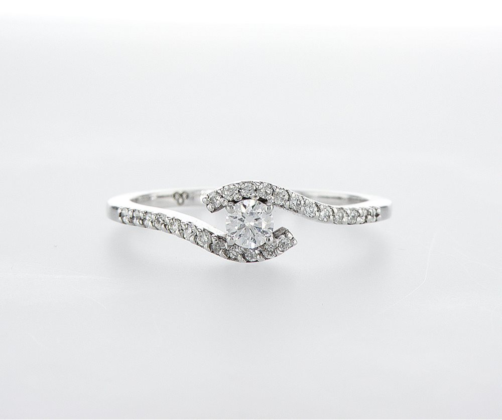 טבעת אירוסין מעוצבת עם יהלום מרכזי טבעי במשקל 0.15 נקודות F\VS