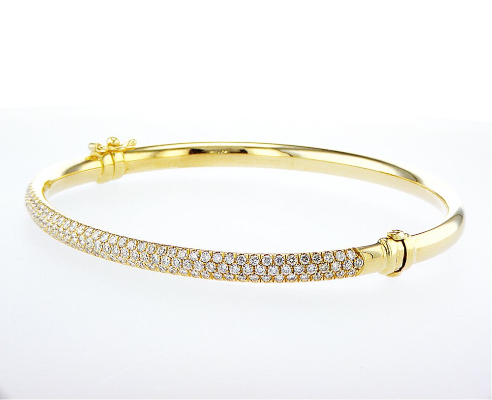 צמיד בנגל זהב צהוב משובץ יהלומים טבעיים במשקל 2.20 קארט באיכות D-F/VS .