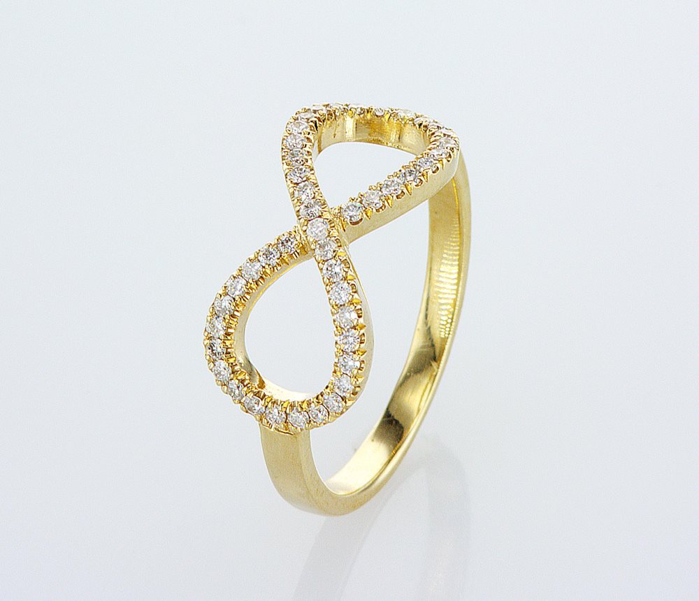 טבעת זהב 14 קארט אינפינטי משובצת יהלומים במשקל 0.33 נקודות באיכות D-F/VS.