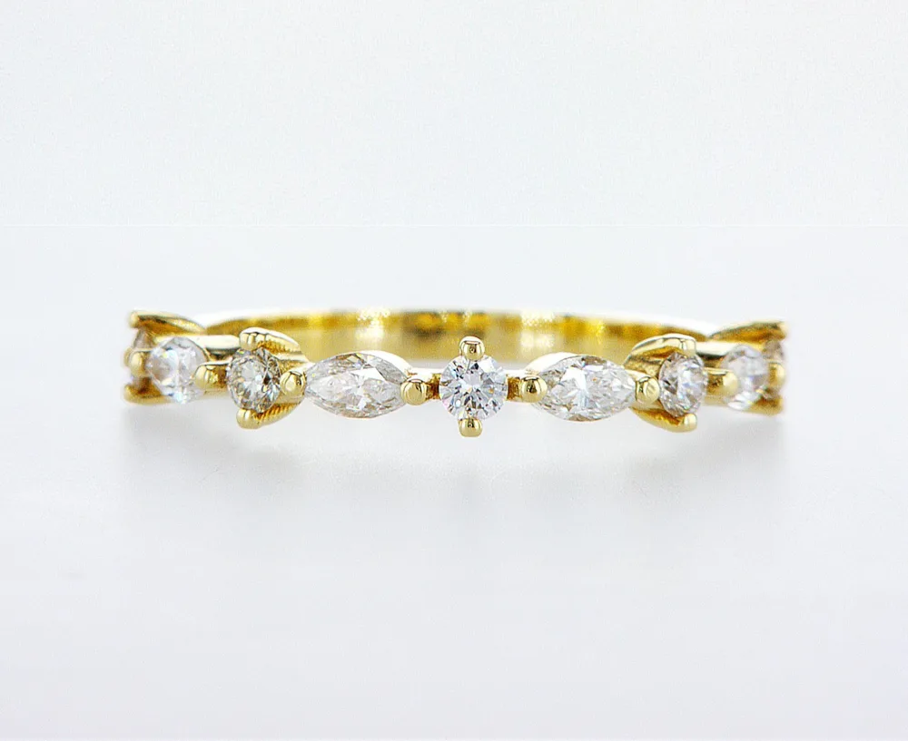 טבעת מעוצבת משובצת יהלומים עגולים ויהלומים בחיתוך מרקיזות טבעת מושלמת על כל אצבע , יכולה להיות כטבעת משלימה לטבעת אירוסין .